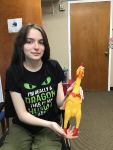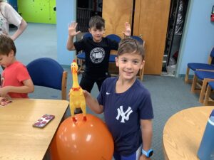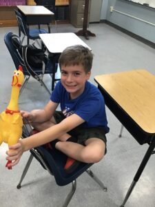 We have had so much fun naming our rubber chicken mascot! However, summer is coming to a close and we will see him again next year!