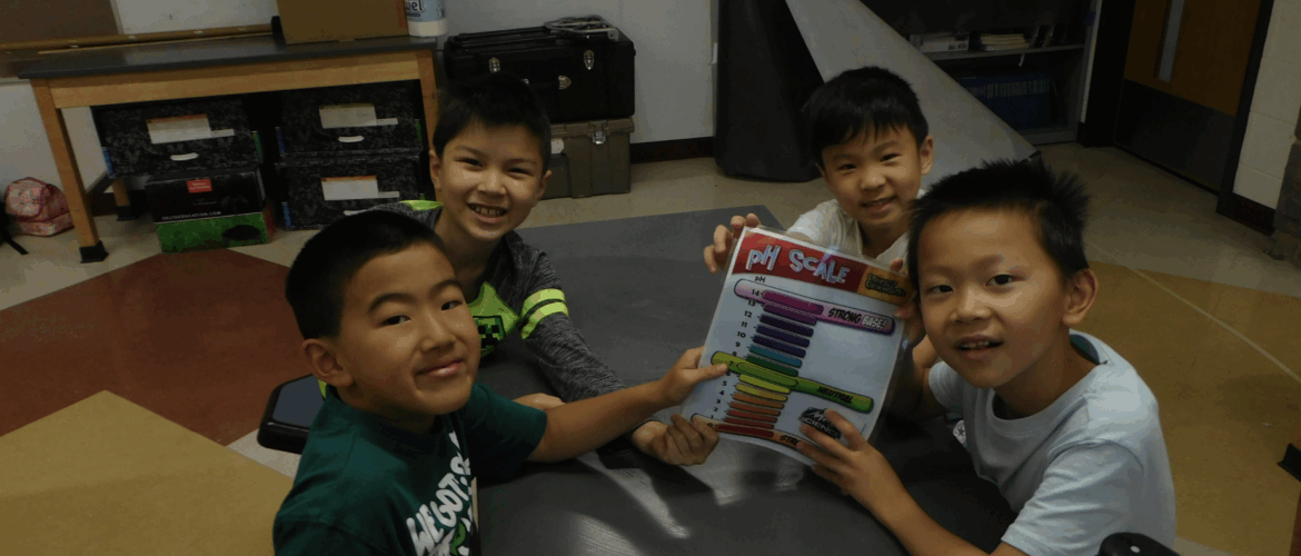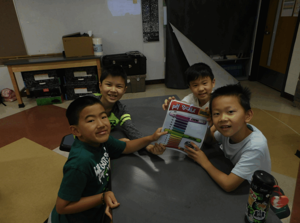 In Crazy Chemworks, campers became junior chemists as they experimented with five different substances: water, sodium borate, glycerin, calcium chloride, and vinegar. Using universal indicator strips, they tested the pH levels of each chemical to identify whether they were acids, bases, or neutral. The highlight of the activity was adding baking soda to each substance to observe chemical reactions.
