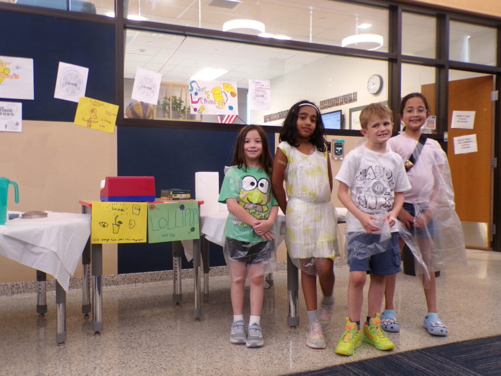 Our Lemonade Stand Entrepreneurs sold their prized drinks! They worked very hard this week conducting market research by asking others about their lemonade preferences. Then, they taste tested all of the combinations of regular and pink lemonade with varieties of fruity flavors to find their favorite, and are now ready to see how their perfected concoctions will sell!