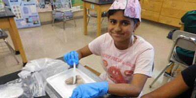 Today at Somerset, our Anatomy and Surgical Techniques class prepared for the zombie apocalypse by disecting a sheep’s brain. Our students were on the hunt to identify all four lobes inside a sheep’s brain: the frontal lobe, the parietal lobe, the temporal lobe, and the occipital lobe.